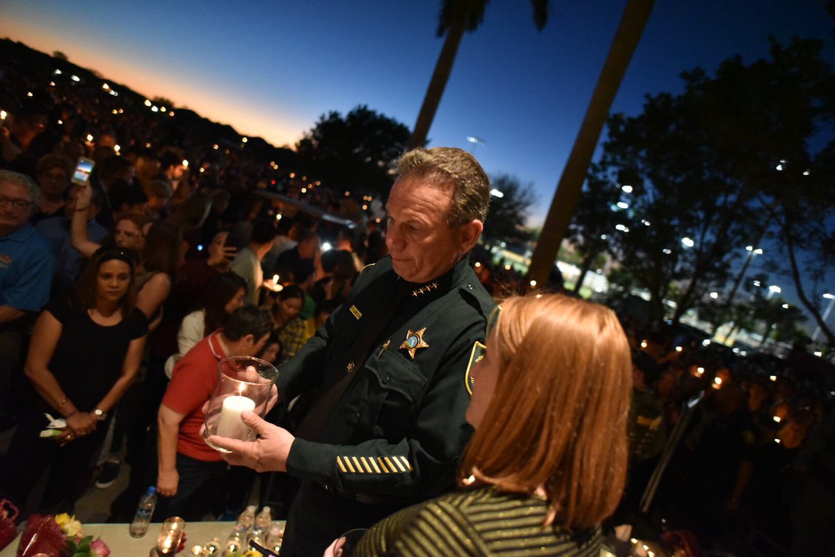Broward County Sheriff Scott Israel gave an address at the emotional event and called for tighter gun laws.