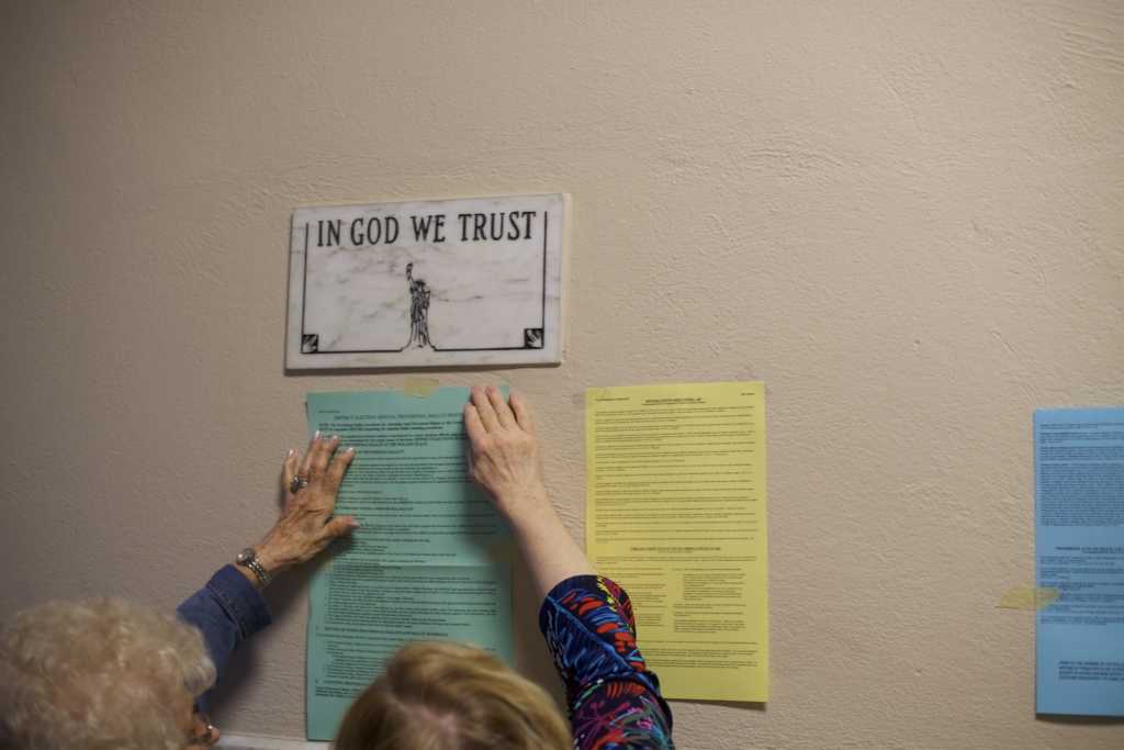 The bill, signed into law in April, defined a prominent place as “school entry way, cafeteria, or common area where students are likely to see the national motto.” The phrase “may take the form of, but is not limited to, a mounted plaque or student artwork,” the bill continues.